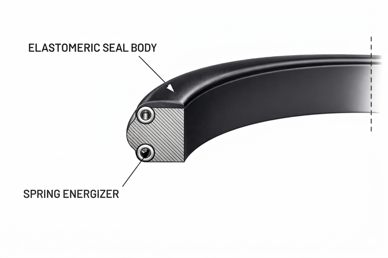 Garter Springs: Stainless steel (SS) construction ensures corrosion resistance and reliable energization, continuously reinforcing the seal edges without compromising flexibility.