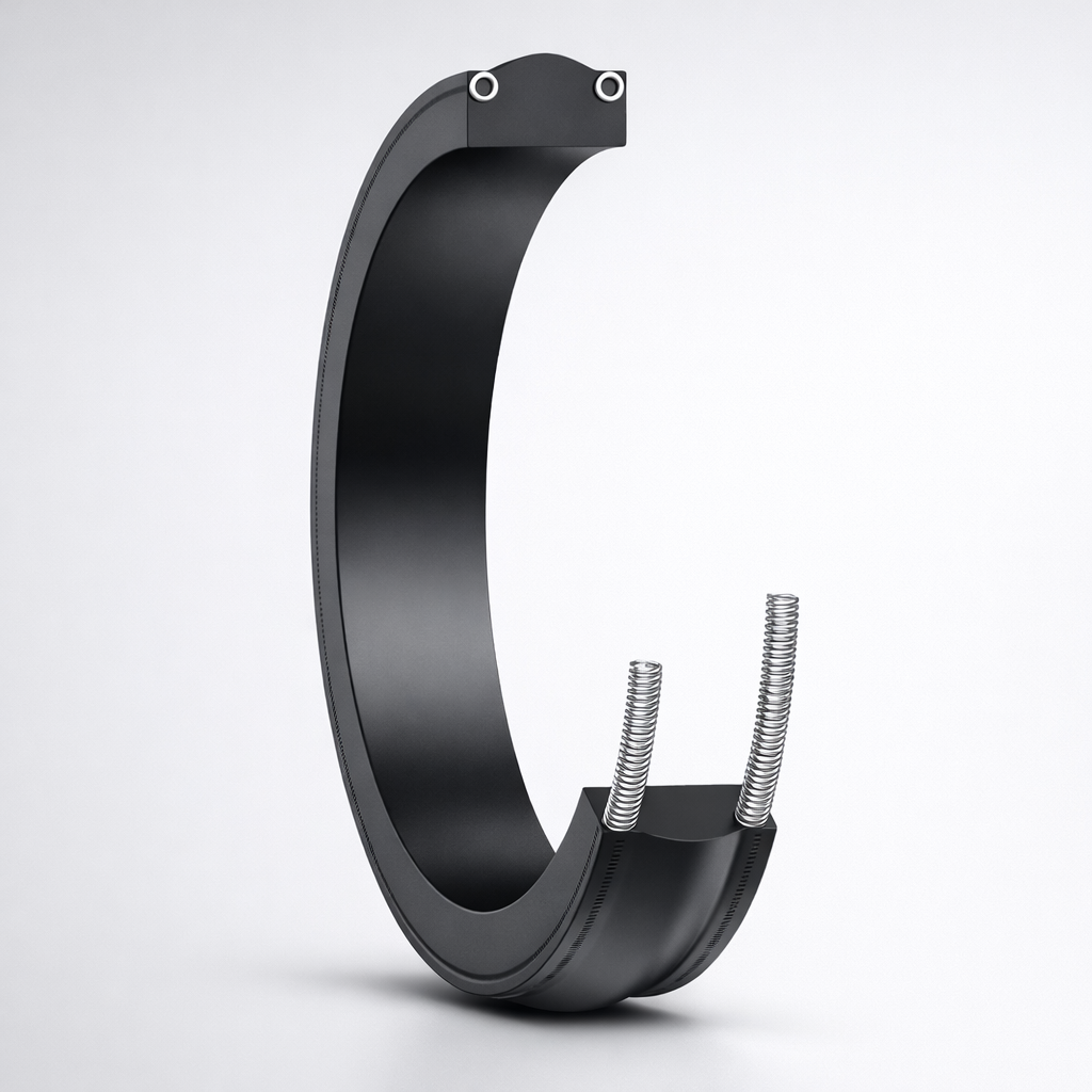 S-Seals integrate stainless steel garter springs directly into the elastomeric body, providing constant energization and extrusion resistance up to 0.125″ gaps—eliminating the need for separate backups or multipiece assemblies prone to installation errors.